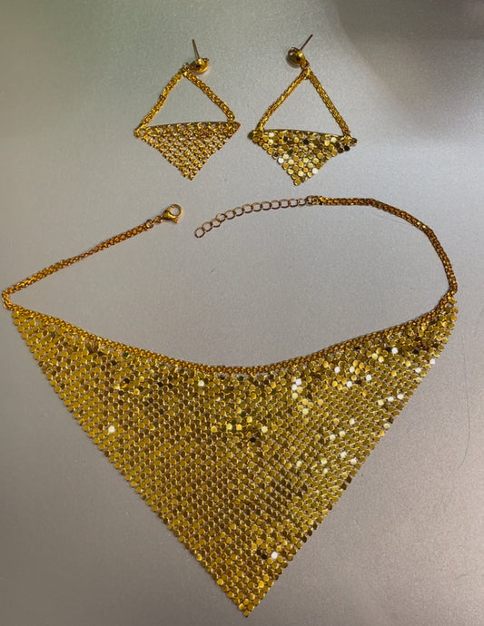 Nina Gold plated pearl necklace & earrings with tikka 820